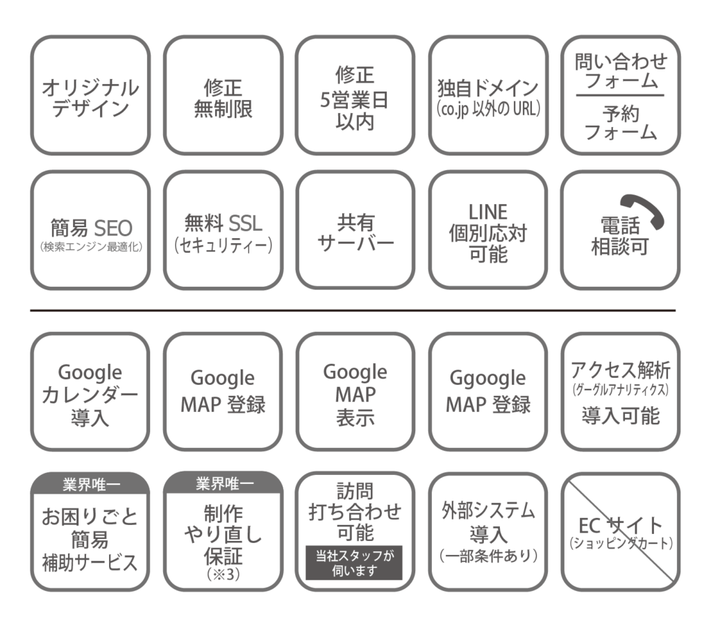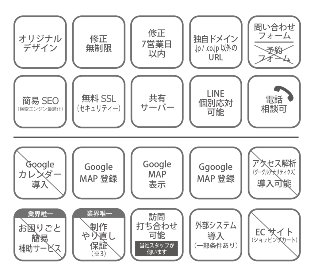 ※2 似たサイトをご希望の方は、現行サイトを参考に再現致します(制作費半額